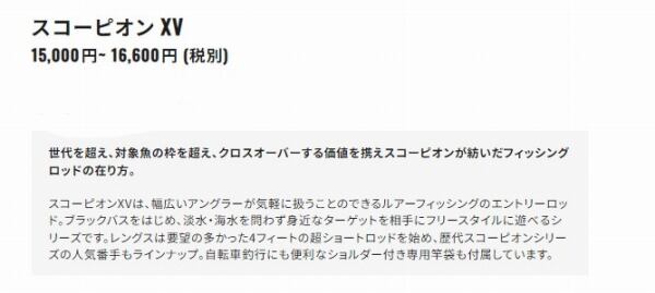 スコーピオンXVは、幅広いアングラーが気軽に扱うことのできるルアーフィッシングのエントリーロッド。ブラックバスをはじめ、淡水・海水を問わず身近なターゲットを相手にフリースタイルに遊べるシリーズです。レングスは要望の多かった4フィートの超ショートロッドを始め、歴代スコーピオンシリーズの人気番手もラインナップ。自転車釣行にも便利なショルダー付き専用竿袋も付属しています。