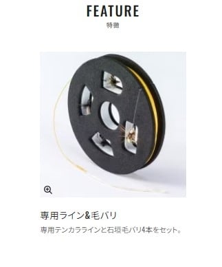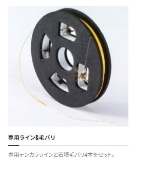 専用ライン&毛バリがセットされた完成仕掛付き。すぐに始められるテンカラフルキット。