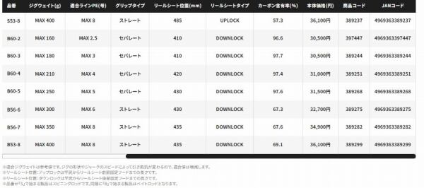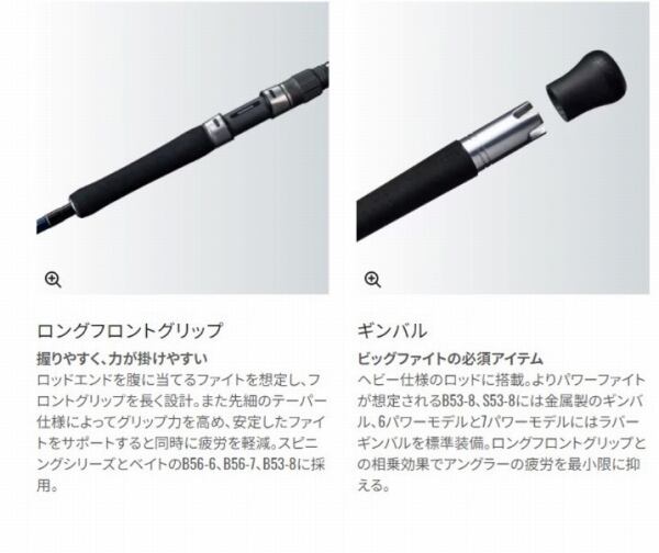 基本となるタイプJは、各アイテムにスピニングとベイトの2タイプを展開。全12機種で主要なジギングシーンをカバーする。また、新設計のブランクスにはこの価格帯としては破格のスパイラルX、ハイパワーXを採用し、上位機種のノウハウを継承。軽く、強く、ブレない体幹に加え、スピニングの8パワーモデルとベイトの6、7、8パワーモデルにはダブルフットのオーシャンガイドを採用。スピニング&ベイトの6〜8パワーモデルにはロングフロントグリップを、そして6、7パワーにはラバー製ギンバル、8パワーには、金属製ギンバルを装備し、大型青物に対応する。