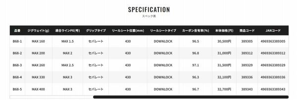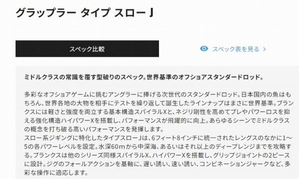 スロー系ジギングに特化したタイプSJは、6フィート8インチに統一されたレングスのなかに1、2、3、4、5の各パワーレベルを設定。水深60mから中深海、あるいはそれ以上のディープレンジまでを攻略する。ブランクスは他のシリーズ同様スパイラルX、ハイパワーXを搭載し、グリップジョイントの2ピースに設計。また、リールシートには面積が広く手のひらに乗せやすいFujiのT-DPS20を採用。ヘビージグを使ったジャーキングにおいても安定したロッド操作を可能にしている。