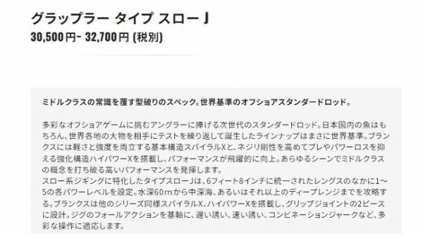 スロー系ジギングに特化したタイプSJは、6フィート8インチに統一されたレングスのなかに1、2、3、4、5の各パワーレベルを設定。水深60mから中深海、あるいはそれ以上のディープレンジまでを攻略する。ブランクスは他のシリーズ同様スパイラルX、ハイパワーXを搭載し、グリップジョイントの2ピースに設計。また、リールシートには面積が広く手のひらに乗せやすいFujiのT-DPS20を採用。ヘビージグを使ったジャーキングにおいても安定したロッド操作を可能にしている。