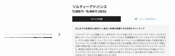 ソルトルアーゲームに本気で取り組みたい。多彩なターゲットを楽しみたい。そんなニーズにお届けする「ソルティーアドバンス」。ブランクスは上位機種譲りのハイレベル。クラスを超える軽さ、シャープさ、パワーを追求し、アイテムは10釣種対応の人気アイテム28本に拡充。ターゲットに応じた専用設計、デザインをお楽しみいただけます。