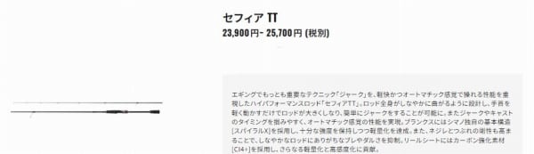 エギングでもっとも重要なテクニック「ジャーク」を、軽快かつオートマチック感覚で操れる性能を重視したハイパフォーマンスロッド「セフィアTT」。