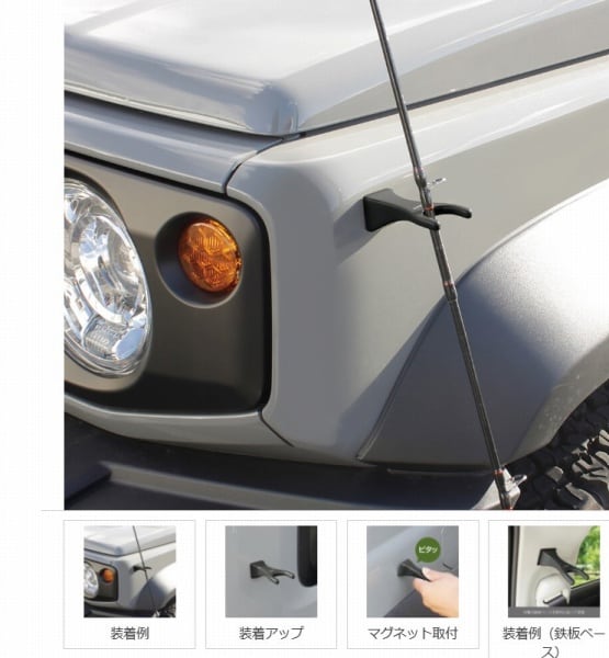 ●駐車場での準備中等、車に貼り付けてロッドの仮置きができる。