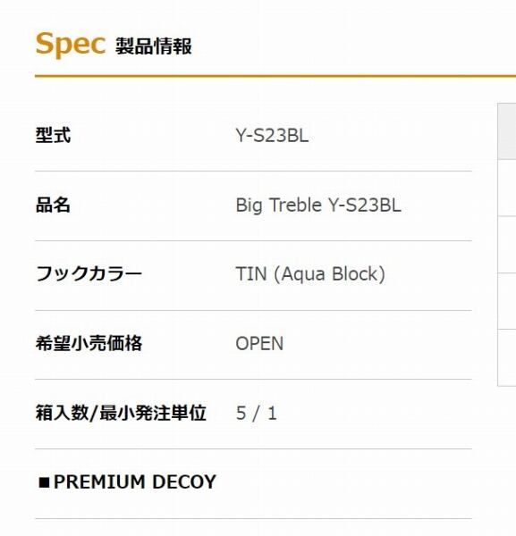 プレミアムデコイ BIG TrebLe Y−S23BL No7/0