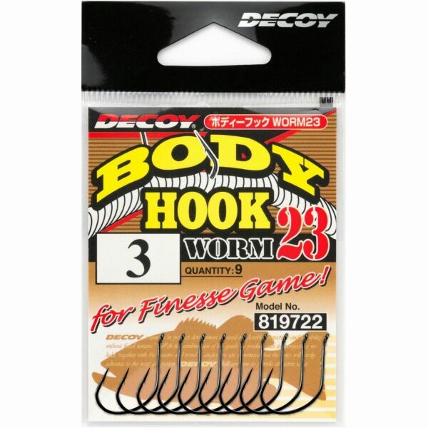 カツイチ 【特長】●よりタフな状況下でも確実に掛け、バレを極限までなくすフォルムを追求。 ●ワームをホールドするベントカーブ部を四角軸とした「LOCK ZONE」を採用。ワームの身切れを抑えます。 ●素早いフックタッチと確実な貫通性能を誇るストレート&アップポイント。 ●スピニングでの使用からベイトフィネスメソッドまであらゆるライトリグに対応する豊富なサイズラインナップ。 ●カラー:NSブラック ●サイズ:#3 ●代表対象魚:ブラックバス|ベントカーブ部に設けられた「LOCK ZONE」がワームのズレ、身切れを最小限に抑え、やや長めの鋭いポイントと、その独自のベントフォルムで素早くバスのアゴをとらえ確実にホールド。ショートバイトをもとらえ、バレを防ぎます。「ボディーフックワーム23」はバレやすい、飲まれやすい、ワームのズレが気になる・・・、これらのマスバリスタイルフックの弱点を一つ一つクリアー。その豊富なサイズラインナップで、様々なスタイルにも対応するスーパーフィネスフックです。
