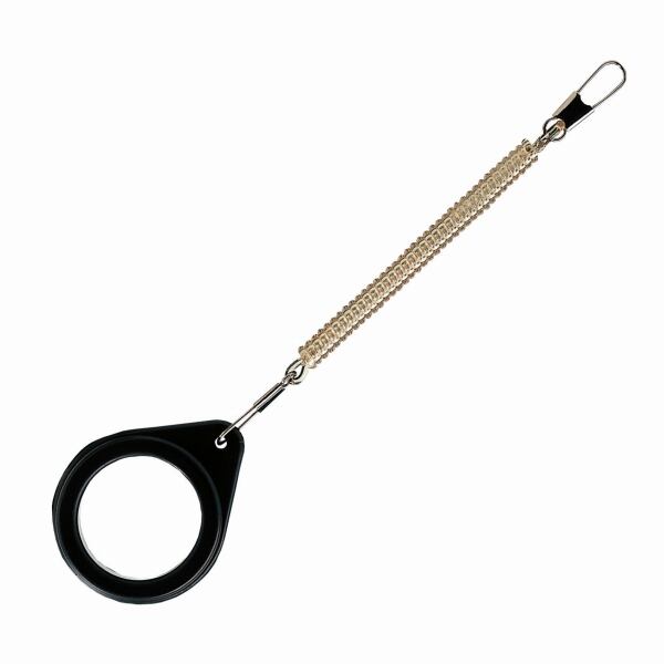 指にリングを入れリングの外周にラインを巻きつけ締め込んで使用します。