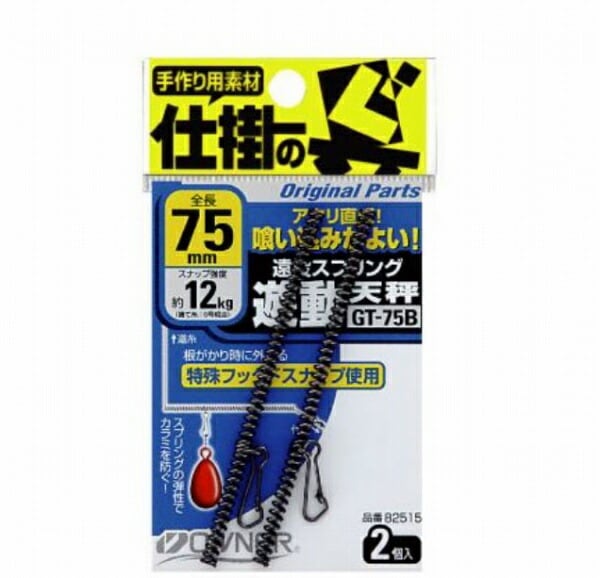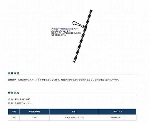 大物投げ・底物遠投対応天秤 バネの弾性がカラミを防ぐ。特殊フックドスナップ使用で根掛りした時に仕掛を回収しやすい。