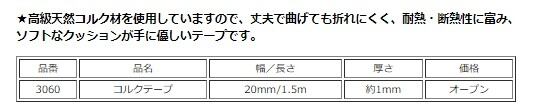 ★高級天然コルク材を使用していますので、丈夫で曲げても折れにくく、耐熱・断熱性に富み、ソフトなクッションが手に優しいテープです。