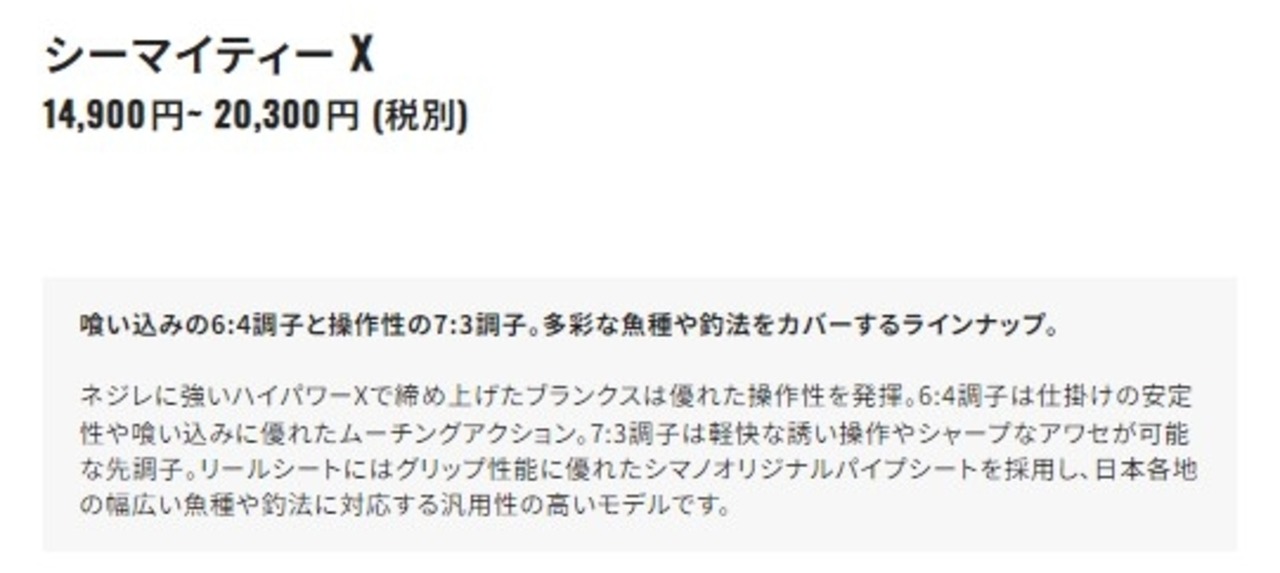 ネジレに強いハイパワーXで締め上げたブランクスは優れた操作性を発揮。6:4調子は仕掛けの安定性や喰い込みに優れたムーチングアクション。7:3調子は軽快な誘い操作やシャープなアワセが可能な先調子。