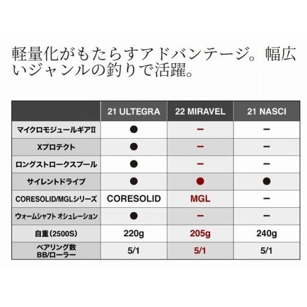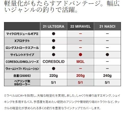 ヴァンキッシュを頂点に回転の軽さ、自重の軽さを追求するMGLシリーズに、世界戦略機種となるミラベルが誕生しました。ボディなどの大型のパーツにCI4+を採用し、クラスを超えた軽量化を達成。また、サイレントドライブやネジ込み式ハンドルを採用することでリーリング時のノイズやガタを抑制しました。自重・巻きの質・軽さを追求した妥協ない設計はあなたの釣りをより一層楽しくしてくれるはず。キャスト、リーリング、ロッドワーク、様々なシーンで軽量化がもたらす恩恵をご体感ください。