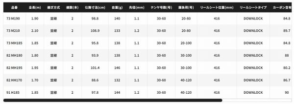 誘いやすく、掛けやすく、快適に楽しめる。最先端のタチウオシーンを存分に楽しむ専用ロッド5機種にロングレングスの”73M210”、省エネバイブレーションにも対応する”82HH170”を加えた充実の7アイテムで全国のタチウオシーンに対応します。