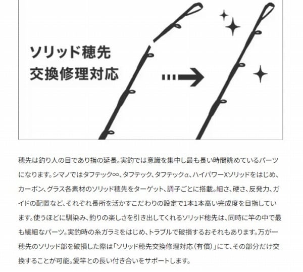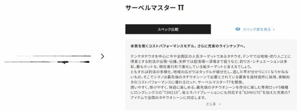 ともすれば釣法の多様化、地域の広がりはタックルが細分化し、適した竿が分かりにくくなりかねないもの。そこでシマノは最先端のタチウオシーンで必要とされている要素を適材適所に採用、実戦向きのコストパフォーマンスに優れるロッド、サーベルマスターTTを開発。