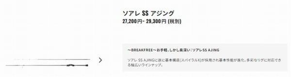 ソアレ SS AJINGに遂に基本構造[スパイラルX]が採用され基本性能が進化。多彩なリグに対応できる幅広いラインナップ。
