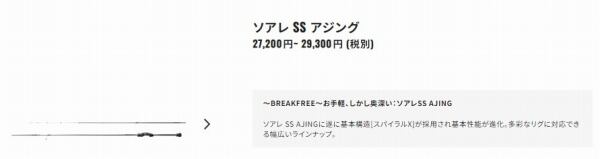 ソアレ SS AJINGに遂に基本構造[スパイラルX]が採用され基本性能が進化。多彩なリグに対応できる幅広いラインナップ。