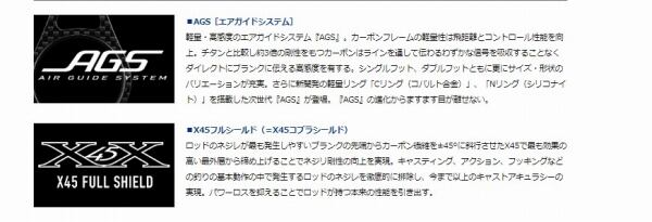 ティップからバットへスムーズにパワー伝達する調子をさらに追及しながらも、バットのパワーと張りをアップさせて、ブランクスを現代のルアーに合わせて最適化。ボートシーバスロッドの最高峰としてキャスト性能と操作性に磨きをかけた。ネジレ抑制効果の高いX45フルシールドによって、パワーロスを大幅に解消。遠投性、ルアー操作性、魚を寄せるパワーをさらに向上。流行のミノーのジャーキングや、大型トップウォータープラグに対応するラインナップも追加。
