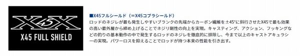 ティップからバットへスムーズにパワー伝達する調子をさらに追及しながらも、バットのパワーと張りをアップさせて、ブランクスを現代のルアーに合わせて最適化。ボートシーバスロッドの最高峰としてキャスト性能と操作性に磨きをかけた。ネジレ抑制効果の高いX45フルシールドによって、パワーロスを大幅に解消。遠投性、ルアー操作性、魚を寄せるパワーをさらに向上。流行のミノーのジャーキングや、大型トップウォータープラグに対応するラインナップも追加。