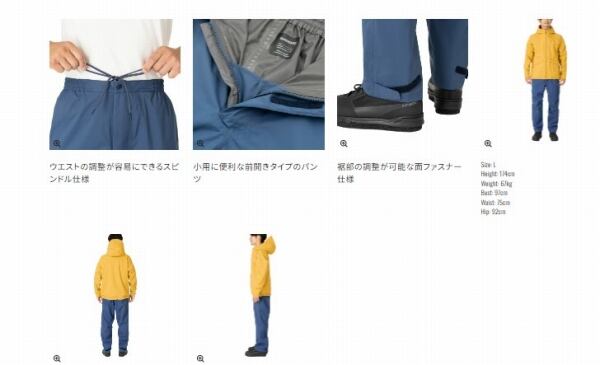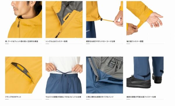 ●雨の釣行時に求められる基本的な性能を備えているだけでなく、ジャケットはドローコード、パンツは面ファスナーで裾部分のフィット感の調整が簡単に行えるようになっています。