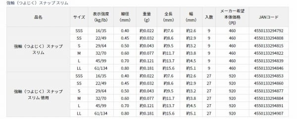 強度だけでない。細部までこだわったルアースナップ強軸スナップにスリムタイプ追加。
