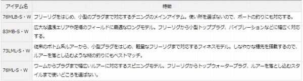 アイテム構成は、ベイトとスピニング2アイテムずつ。