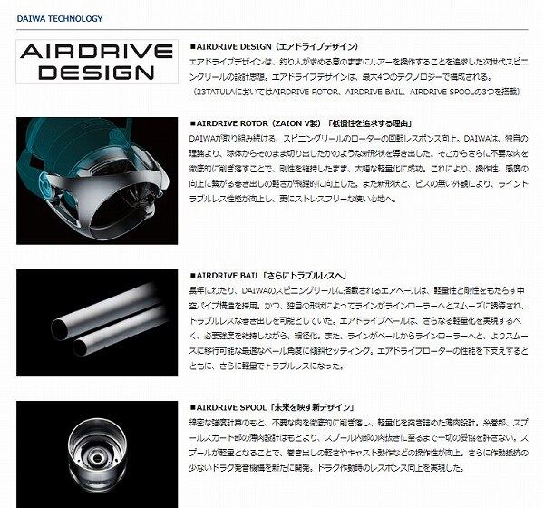 軽さと強さを両立するZAION V製のモノコックボディは、負荷が掛かった状態でもたわみや歪みを抑えて力強い巻き上げをアシスト。一方でZAION V製エアドライブローターの搭載により、低慣性化による軽い巻き出しも実現している。またドラグには、スムーズな滑り出しと安定した効きでラインへの負荷を低減するATD TYPE-Lを採用。少ないノブの回転で瞬時にテンションを調整できるクイックドラグとの相乗効果で、ライトライン使用時においても、バスとのファイトを楽しみつつスピーディにビッグフィッシュを獲ることを可能とした。