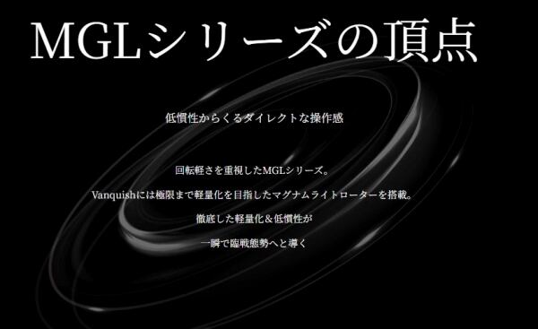 MGLシリーズの頂点としての軽量化、低慣性化、感度アップの追求はもちろん、インフィニティテクノロジーにより、抜けるようなキャストフィール、耐久性、巻きごこちとパワーを手に入れた。さらにライントラブルレス性能、ドラグの耐摩耗性能も大幅に向上。