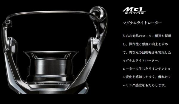 MGLシリーズの頂点としての軽量化、低慣性化、感度アップの追求はもちろん、インフィニティテクノロジーにより、抜けるようなキャストフィール、耐久性、巻きごこちとパワーを手に入れた。さらにライントラブルレス性能、ドラグの耐摩耗性能も大幅に向上。