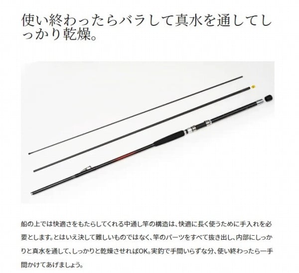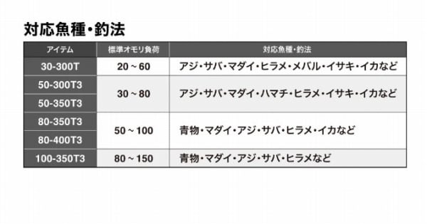 ガイドがないから糸ガラミなし。インナーガイドロッド(中通し竿)は、鈎数の多い仕掛けや夜釣りでのガイド糸絡みなどのトラブルを解消することが特長です。そんな中通し船竿がさらに快適に進化。ラインの導入口にあたるガイドフレームには、ライン抵抗を抑える大口径エントランスガイドとライン収束用ガイドのダブルリング構造を備え、ロッド内部へのスムーズなライン導入を実現。穂先は自然に喰わせるソフトな内径1.8mm穂先(30-300Tに採用)と、ウキ止めも楽に通る内径3.0mm穂先(50-300T3〜100-350T3)の2タイプ。ネジレに強いハイパワーX構造を採用したブランクスは操作性に優れ軽量、アタリも明確に伝えてくれます。
