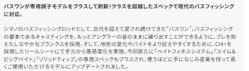 バスワンが専用調子モデルをプラスして刷新!クラスを超越したスペックで現代のバスフィッシングに対応。
