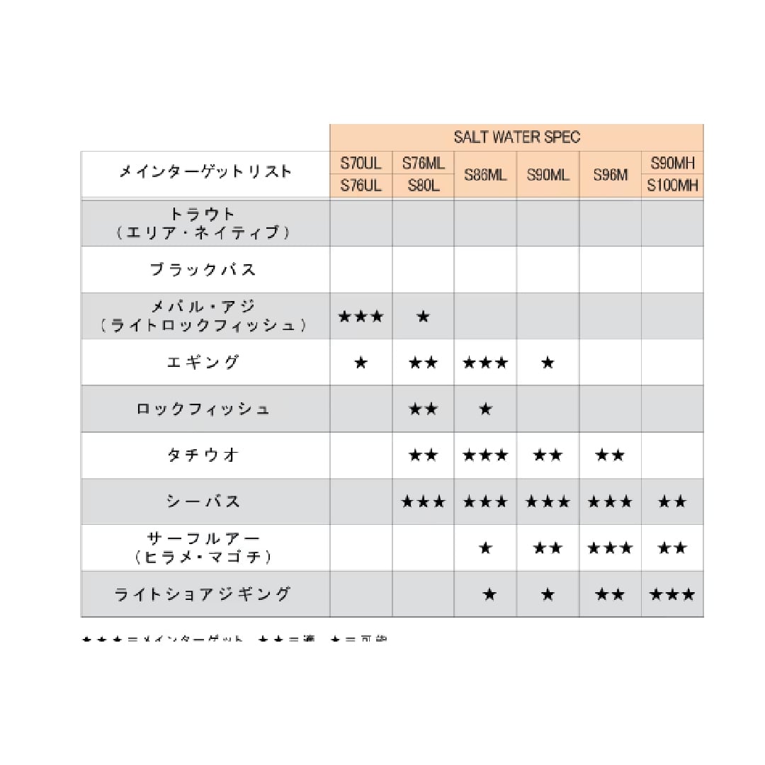 老若男女問わず、これからアジ、メバル、シーバス、タチウオ、アオリイカ、ヒラメといったソルトショアソルトゲームをはじめる方にオススメのハイコストパフォーマンスロッドです。