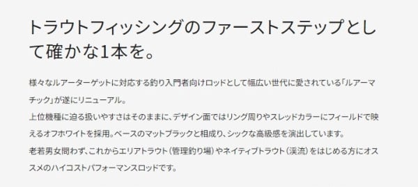 トラウトフィッシングのファーストステップとして確かな1本を。