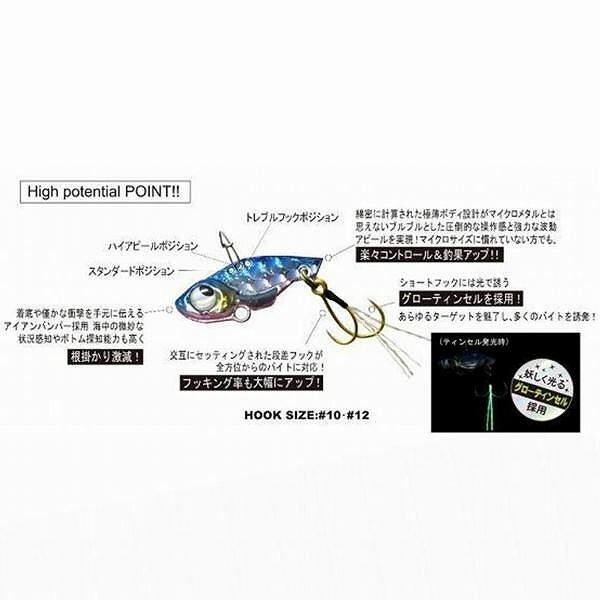 アジ・メバルをメインとし、何でも釣れるのが特徴のマイクロメタルゲーム。しかし、軽量ウエイトの為、使用感が薄いという点が従来の課題であった。これをクリアーすべく誕生したのが「魚子バイブ」である。圧倒的な使用感と強波動による集魚効果は絶大!!究極のライトアイテムだといえる。