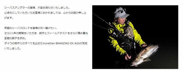 ロッドにおいてひとつのウィークポイントとなるのが、複数のブランクが重なり合うジョイント部分だ。通常、ここには破損対策として多くのカーボンクロスを巻くことになるが、このmorethan BRANZINO EX AGSには、V-ジョイントαを搭載。ジョイント部がさらに軽く、強く、スムーズに曲がるようになったのはもちろん、ブランク設計の自由度がさらに拡大。結果、ルアーロッドにおいての極上マテリアルであるSVFコンパイルXナノプラスを用いたブランクが真価を発揮。ブランクがさらに軽く、細身になり、飛躍的に感度と操作性が向上。調子もさらに作りこんだ。それにより、今まで以上に軽いルアーの着底や水流の抵抗を鮮明に感じ取れるようになっている。