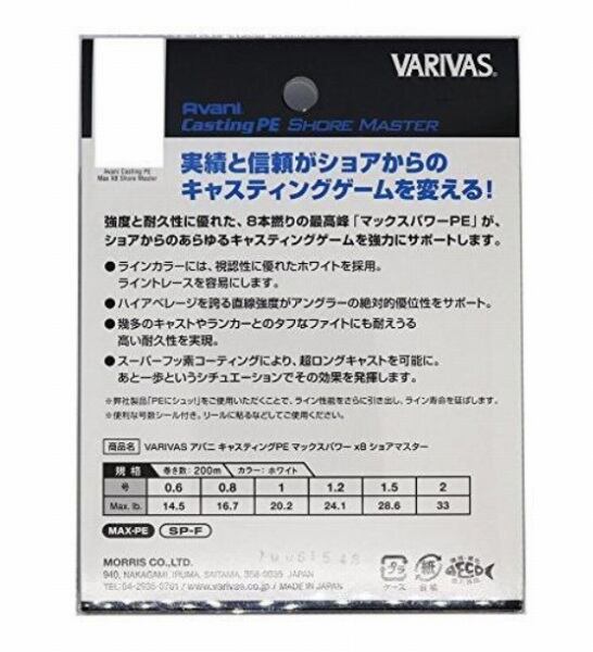 実績と信頼がショアからのキャスティングゲームを変える 強度と耐久性に優れた8本撚りの最高峰「マックスパワーPE」が、ショアからのあらゆるキャスティングゲームを強力にサポートします。 ラインカラーには視認性に優れたホワイトを採用。ライントレースを容易にします。 ハイアベレージを誇る直線強度がアングラーの絶対的優位性をサポート。 幾多のキャストやランカーとのタフなファイトにも耐えうる、高い耐久性を実現。 スーパーフッ素コーティングにより、超ロングキャストを可能に。あと一歩というシチュエーションでその効果を発揮します。