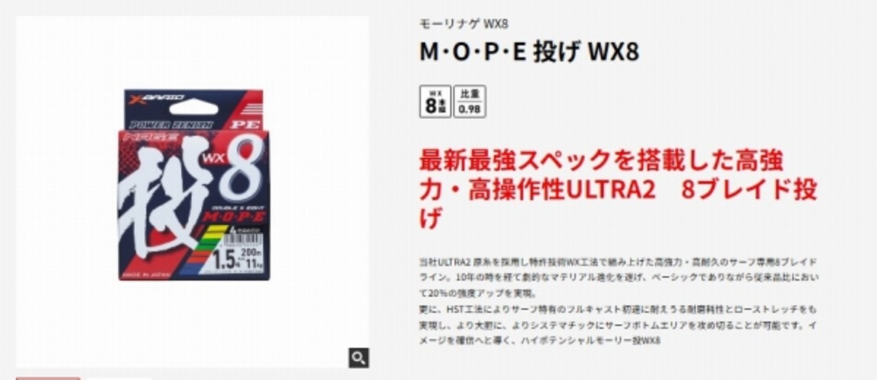 当社ULTRA2原糸を採用し特許技術WX工法で組み上げた高強力・高耐久のサーフ専用8ブレイドライン。