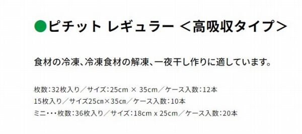 魚がおいしく冷凍できるシート ピチットレギュラー15枚入り 素材の冷凍、冷凍素材の解凍、一夜干し作りに適しています。生臭みをとり、旨みを凝縮する。