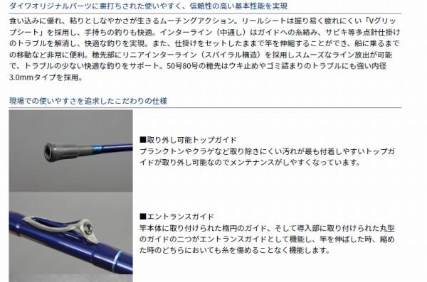 リールシートは握り易く疲れにくい「Vグリップシート」を採用し、手持ちの釣りも快適。