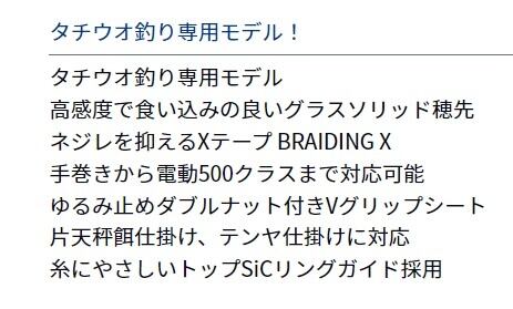 多彩な対象魚をゲーム感覚で楽しむための専用ロッドシリーズ「X」のタチウオモデル