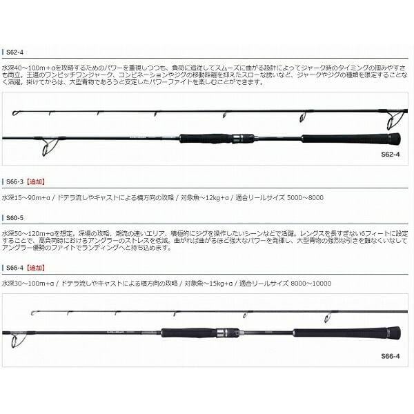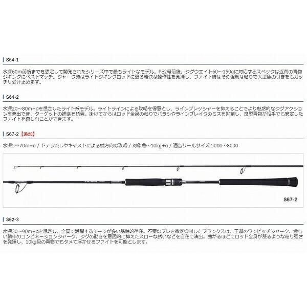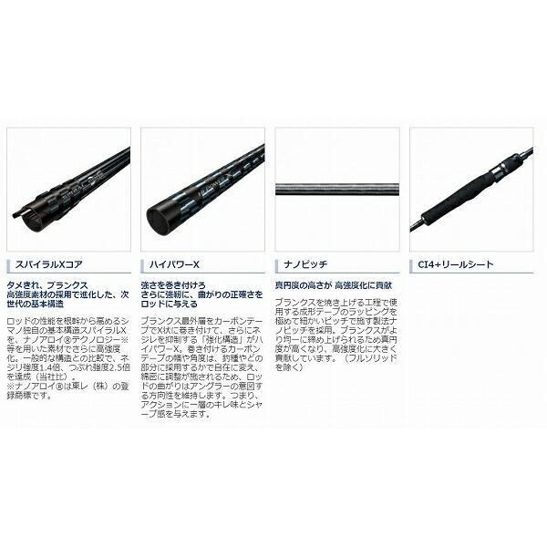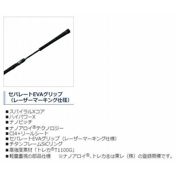 [◆沖縄/離島/北海道のお客様に対する発送が出来ません。]【メーカー希望小売価格\63300】応用性が高く、スピード感あふれる操作感が魅力のスピニングジギングをストレスフリーに楽しむべく、軽さ、バランス、強さの総合力を追求。キーワードはスリム、スムーズ、ストロング。スパイラルXコアを搭載した細身軽量&高反発のブランクスは最大で50g、約25%の軽量化を達成※。さらにスムーズな荷重移行でアングラーの負荷と疲労を軽減しました。