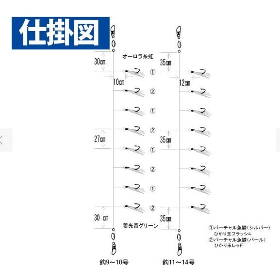 ●サイズ:14-6号 ●全長:315cm ●釣り方、フィールド:船釣り(中深場) ●代表対象魚:アジ(鰺) ●代表対象魚(詳細):イナダ・ハマチ・ブリ・メジロ・ワカシ・ワラサ|日本海電気釣り用。バーチャル魚鱗とオーロラ糸の相乗効果で魚にアピール。