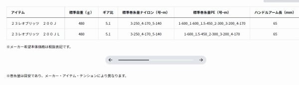 ※JAFS基準巻上力9kg:12%アップ(17LEOBRITZ 200J比較)