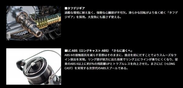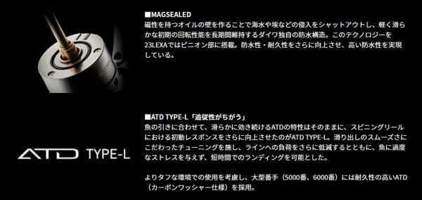 過酷なフィッシングシーンを想定し、開発されたタフリール「LEXA」。リールの心臓部であるドライブギアには、タフデジギアを搭載。外核となるボディ素材は、高強度のアルミを採用した。さらにピニオン部にマグシールドを搭載することで、LEXAの代名詞である高剛性・高耐久性を実現。新たにAIRDRIVE DESIGNを採用することで、巻き出しの軽さと重量バランスを改善し、高次元の操作性を手に入れた。ショアジギング、シーバス、SLJ、ロックフィッシュゲームなど、タフさが求められるシーンでこそ、真価を発揮する。