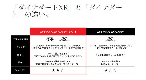 シーズン問わずターゲットを強制的に追わせて喰わすことでストロングバイトに持ち込む魅惑のワインドゲームを提案する「DYNA DART」にXRシリーズが登場。XRシリーズは[ハイパワーX]に加え、[スパイラルXコア]と[Xガイド]を搭載し、軽さと操作性を向上。扱いやすさの証明された[セミロングフロントグリップ]や[天面フラットリアグリップ] (スピニングモデルのみに採用) はそのままに、より状況や各地のフィールド特性に合わせたアイテム展開を備え、タフコンディションを打ち破るスペックを獲得しました。