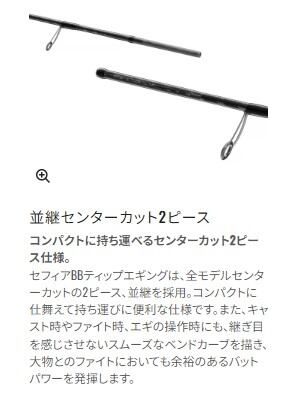 ●ネジリ剛性を高める強化構造[ハイパワーX]は不快なブレやダルさを抑制し、アタリを正確に捉えやすく、ここちの良い操作感を実現。センターカット2ピース設計により、持ち運びにも便利、不意の大物にも余裕なバットパワーであるのも魅力の1つ。