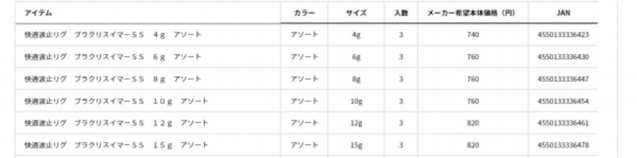快適波止リグ ブラクリスイマーSS 10g アソート