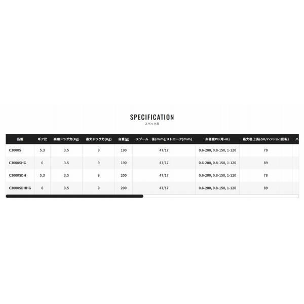 糸巻き量PE0.8号-150mのシャロースプール、操作時に握りやすいEVAハンドルノブ、ラピッドファイアドラグ、ダブルハンドルモデル、さらにはリジッドサポートドラグ等、スタンダードなエギングに最適なスペックを搭載。