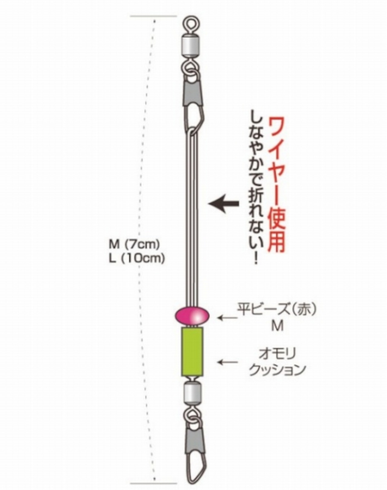 釣り場の潮の早さ、深さ、波の荒さ等によりオモリをワンタッチで取り替える事ができます。イシモチ・アイナメ・エビ等に。