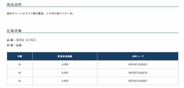 夜光グリーンオモリで強力集魚。エサ付け用ワイヤー付。