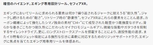 カーボン繊維によって強化したシマノ独自の素材“CI4+”にて成型された軽量かつ高強度なボディ。滑らかな巻き心地かつ耐久性にこだわったマイクロモジュールギア?。微細な振動やガタつきを抑制するサイレントドライブ。更に、ロングストロークスプールを搭載することにより、遠投性能の追求、またイカ特有のジェット噴射による強烈な引きに柔軟に対応するためのリジッドサポートドラグ。エギングに焦点を当てたエギング用専用リールを体感あれ。