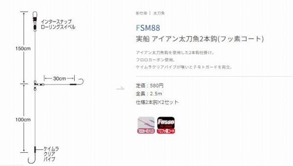 アイアン太刀魚鈎を使用した2本鈎仕掛け。 フロロカーボン使用。 ケイムラクリアパイプが喰いとチモトガードを両立。